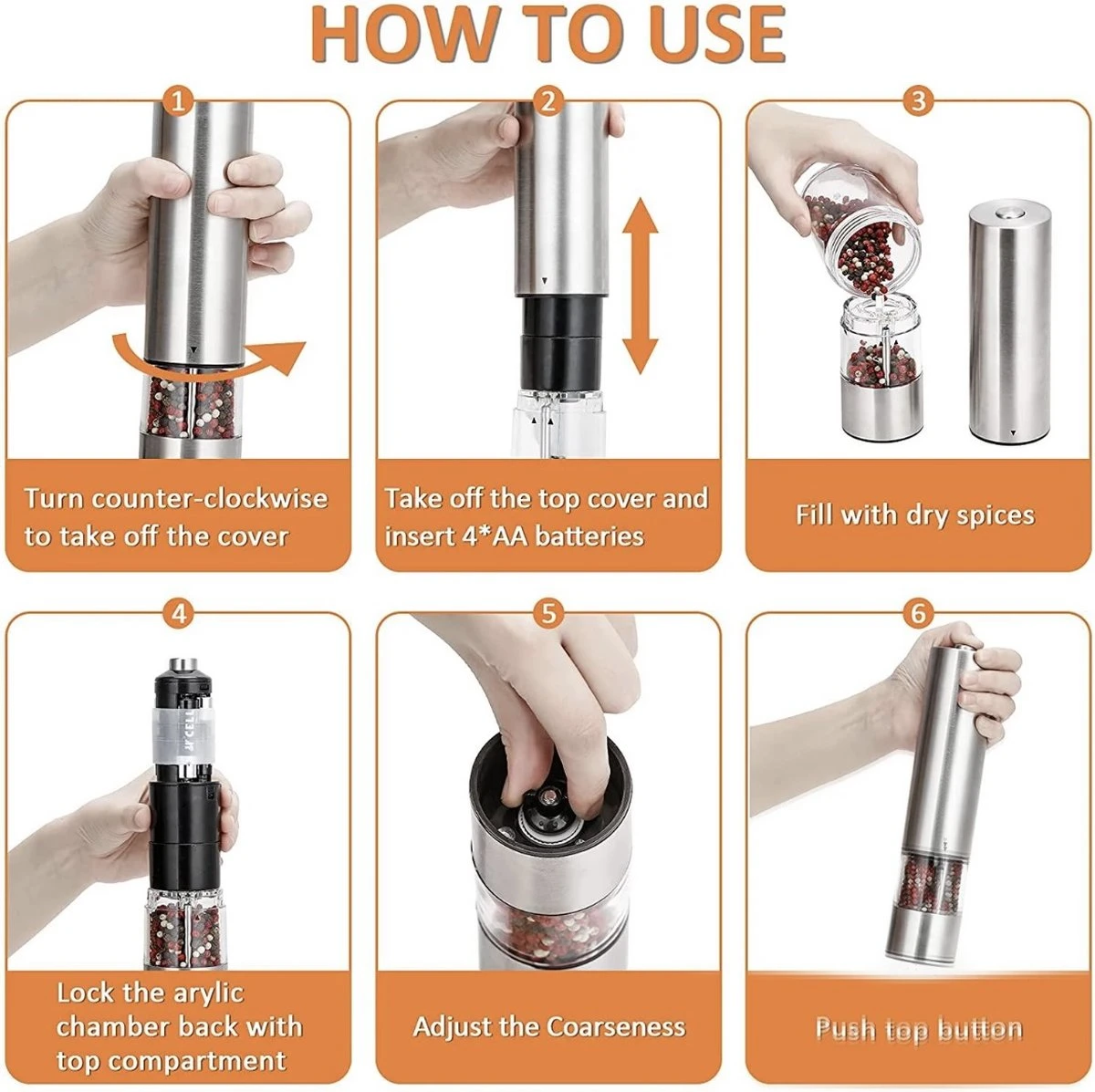 Geef uw eten op eenvoudige wijze smaak met onze elektrische zout- en pepermolen. Als u op zoek bent naar een gemakkelijke manier om uw eten op smaak te brengen, is onze elektrische zout- en pepermolen perfect voor u. Met een instelbare maalgraad en een lichtfunctie is het gemakkelijk om elke keer de perfecte hoeveelheid kruiden te krijgen. Bovendien zorgt het soft-grip ontwerp ervoor dat u hem gemakkelijk kunt vasthouden, zelfs met natte handen.