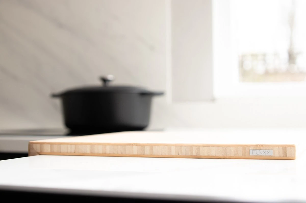 De Funxy Snijplank schuift handig over je aanrecht, waardoor je eenvoudig ingrediënten snijdt tijdens het koken en gemak hebt bij het snijden en smeren van je brood. Ook handig als verlengstuk van je aanrecht boven de gootsteen.