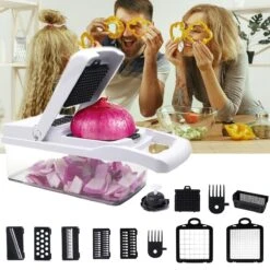 De lente komt er weer aan! De tijd van frisse salades. Met deze multifunctionele groentesnijder heeft u het juiste product om snel en altijd een kant-en-klare salade te maken. We zetten de voordelen voor u op een rij. Het bovenblad heeft niet zoals gewoonlijk een snij optie, maar meteen twee. Hier door is bijvoorbeeld het wisselen van messen bijna niet meer nodig. Toch is deze mandoline voorzien van een handig mes wissel systeem dat neer komt op eruit pakken en nieuwe erin leggen zonder veel gedoe. Het groente en fruit wordt opgevangen in een grote opvang bak en kan zelfs worden afgesloten en bewaard in de koelkast. Wilt u de gesneden groente spoelen dan gebruikt u de meegeleverde vergiet. Gebruik deze snelle en gezonde manier van eten bijvoorbeeld ook bij gewicht verliezen. U heeft altijd een gezonde snack bij de hand. U draagt meteen bij aan een gezondere leefstijl voor het hele gezin.
