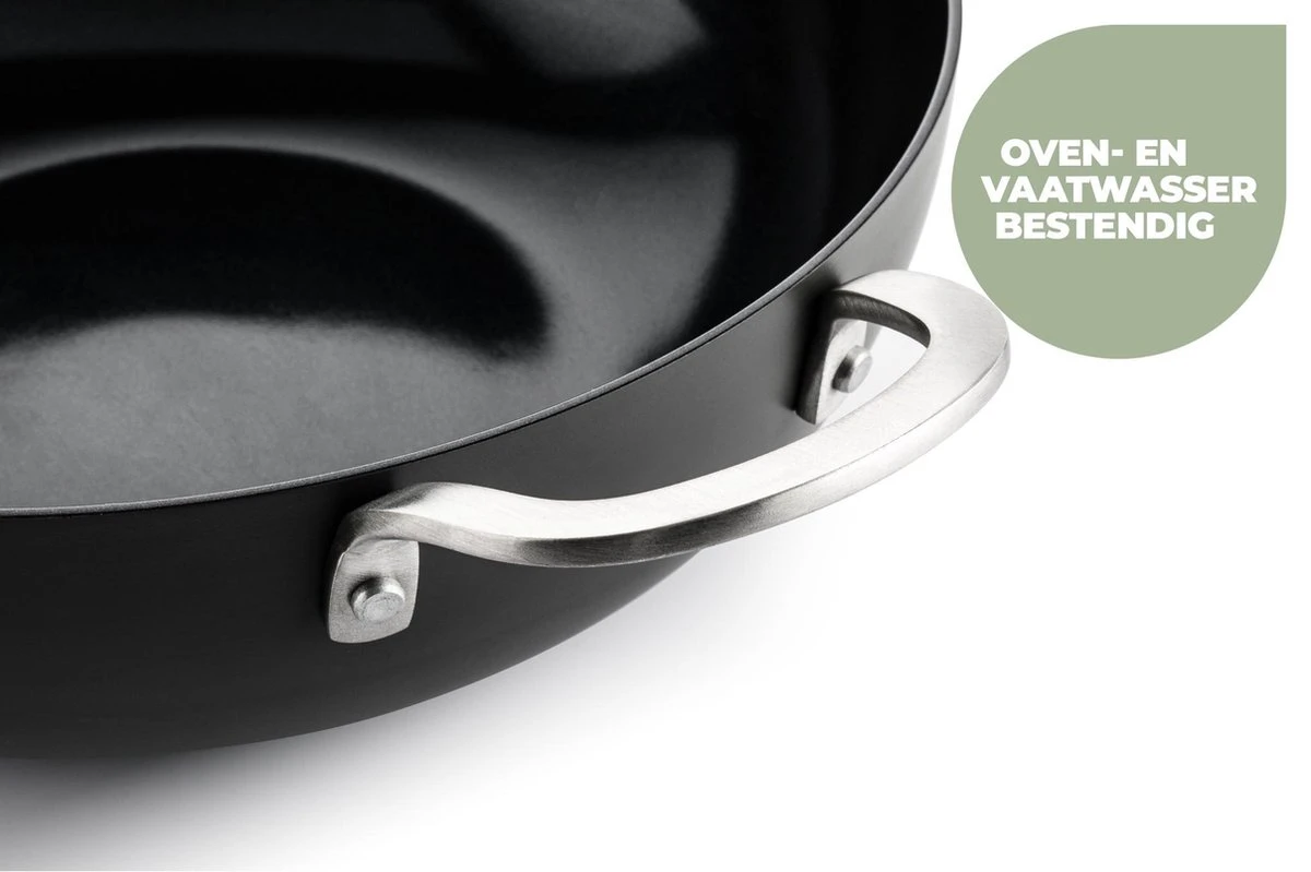 Deze pan is van materiaal gemaakt dat vaatwasserbestendig is. Tip! Zet de pan onderin de vaatwasser, dit wordt namelijk het warmst waardoor de pan goed wordt gereinigd.