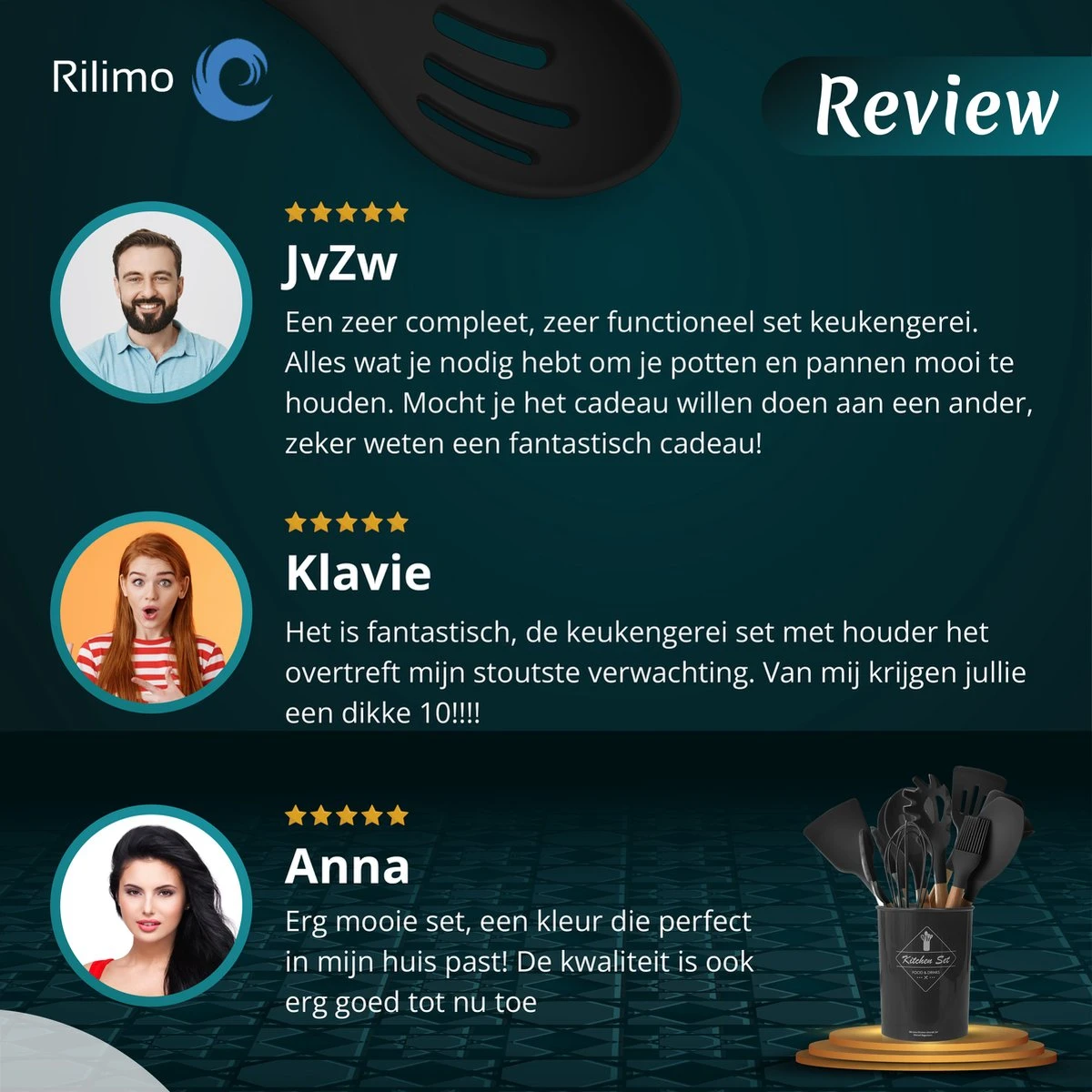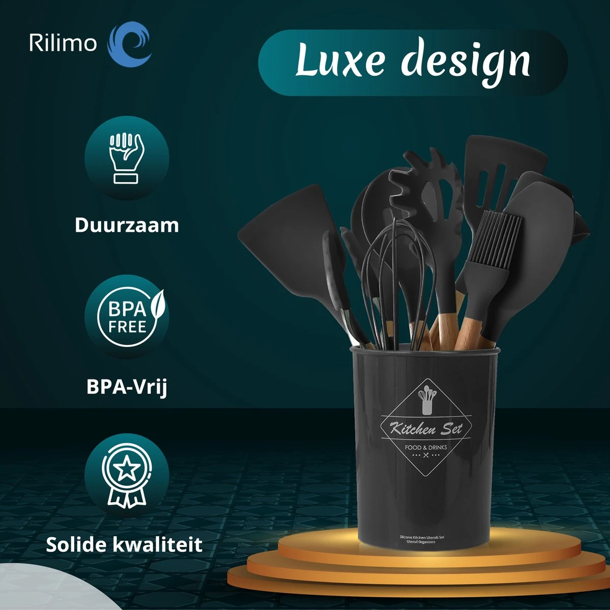 Vindt u het ook lastig om steeds te moeten zoeken naar uw keukengerei? Met deze 12-delige keuken set van Rilimo is dit verleden tijd. Deze set staat als een eyecatcher op uw aanrecht, praktisch en verzorgt alle keukenbenodigdheden tot uw bereik. Met deze set bent u elk recept de baas. Deze set is zeer compleet en biedt voor elke need de juiste benodigdheden. Start vandaag nog met koken van uw favoriete gerechten met de perfecte benodigdheden.