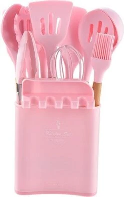 Merkloos Kookgerei Roze 13-delig Met Houder En Kookhulpstuk – Keukengerei Set – Kitchenset Roze