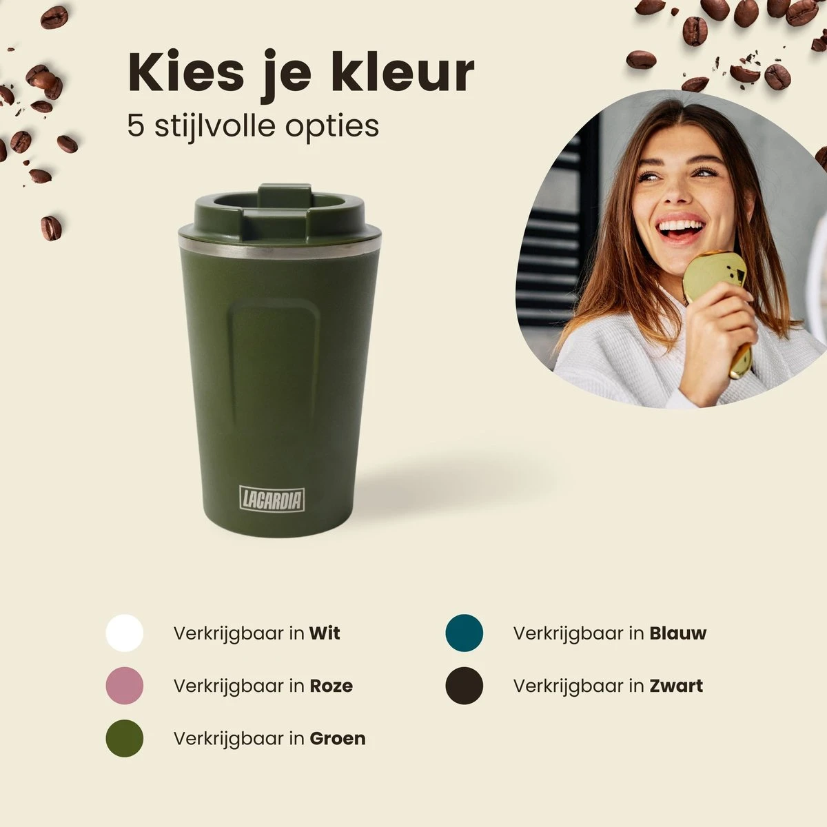 Een koffiebeker to go die niet lekt en je koffie tot 4 uur warm houdt! Koffie of thee, de koffiebeker van LaCardia houd je drank warm en lekker. De koffiemok is 380ML, goed voor 3 kopjes koffie. De koffiebeker is drievoudig geïsoleerd waardoor je koffie of thee extra lang warm blijft. De antislip bodem zorgt ervoor dat de beker moeilijk omvalt en samen met de afsluitbare deksel is de koffiebeker lekvrij en hufterproof.