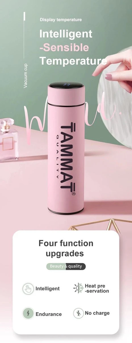 Deze 500ml slimme Thermosfles met temperatuur display is nieuw en trendy! Ons nieuwste TammaT Thermosfles heeft een stijlvol design en past perfect bij al je accessoires. Door de slimme temperatuur display, weet je altijd hoe heet en/of koud je drinken is, dat zorgt ervoor dat je nooit meer je mond of tong verbrand. Door roestvrij metaal en dubbelwandige vacuüm, maakt deze slimme rvs drinkfles robuust en duurzaam.