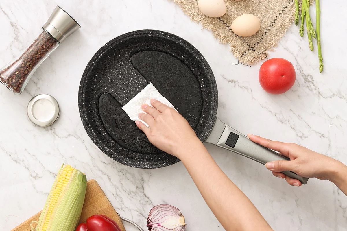 Let op: gebruik geen afwasborstel of spons tijdens het afwassen.