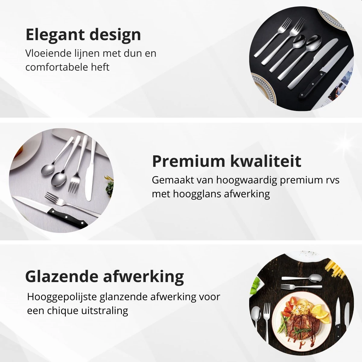 Het Barcelona 24 delige Bestekset voor 4 personen van Veluw is een prachtig bestek voor op de gedekte tafel. Dankzij het moderne, elegante design met hoogglans afwerking is dit bestek een echte eyecather op de tafel. Het Barcelona bestek is geheel gemaakt van 18/0 chroomstaal waardoor het sterk en langdurig mee gaat. Perfect voor dagelijks gebruik met het hele gezin.