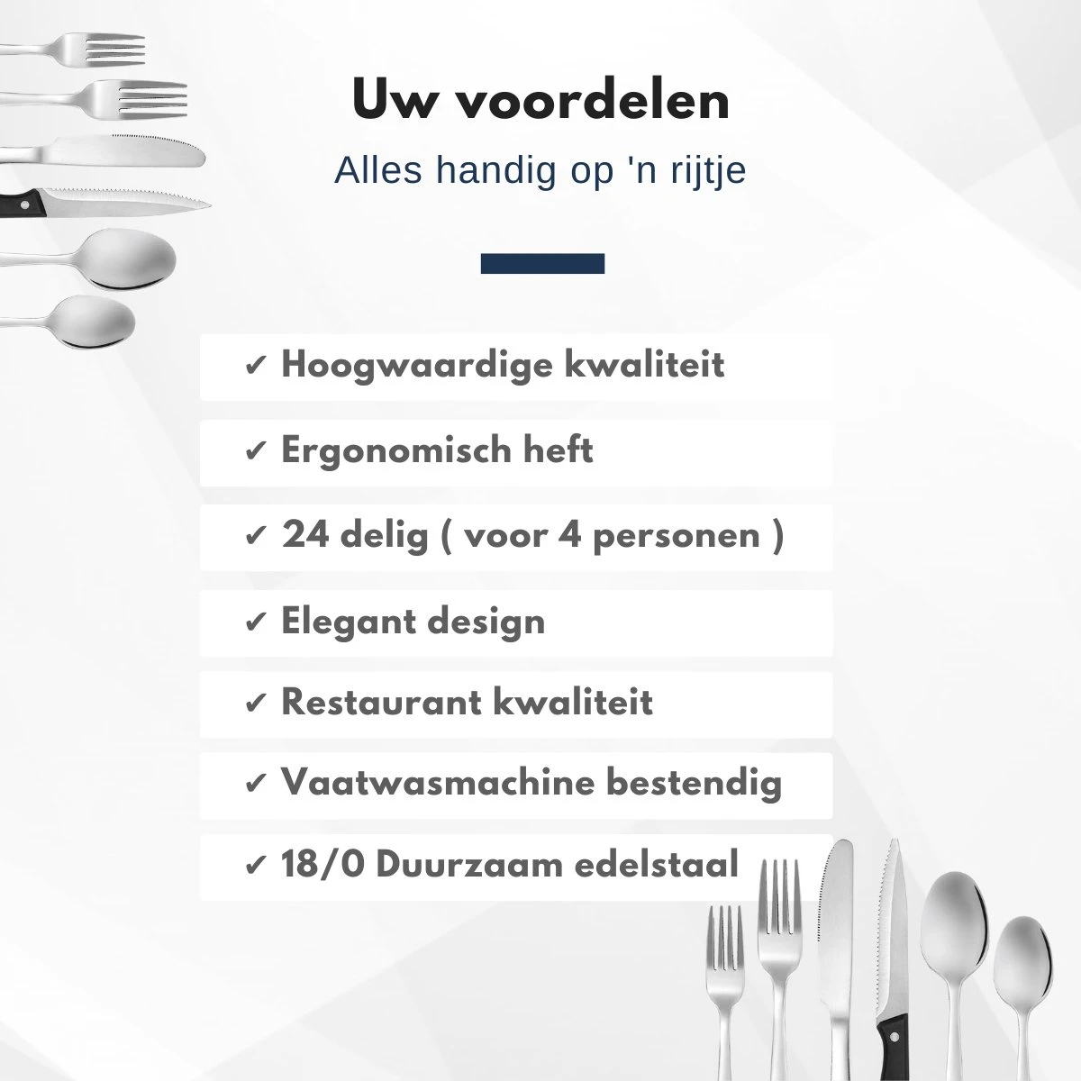 - Was het bestek na gebruik zo snel mogelijk met warm zeepwater.