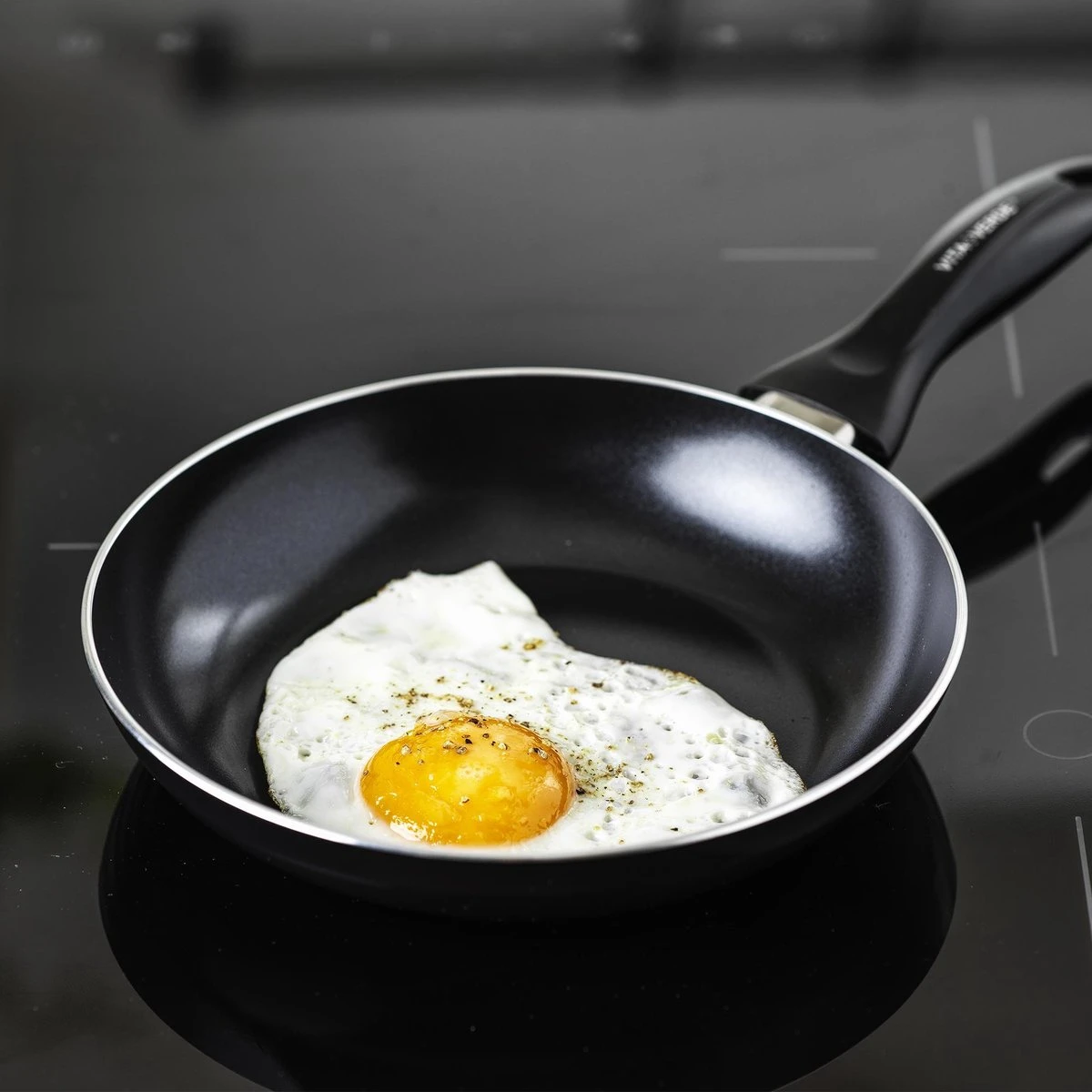 De VitaVerde Expert koekenpannen warmen snel op en zorgen voor geslaagde bakresultaten op alle warmtebronnen, ook inductie. De comfortabele handgrepen in bakeliet blijven altijd koel, zodat je geen pannenlappen meer nodig hebt. Het tijdloze zwarte design staat bovendien mooi in elke keuken!