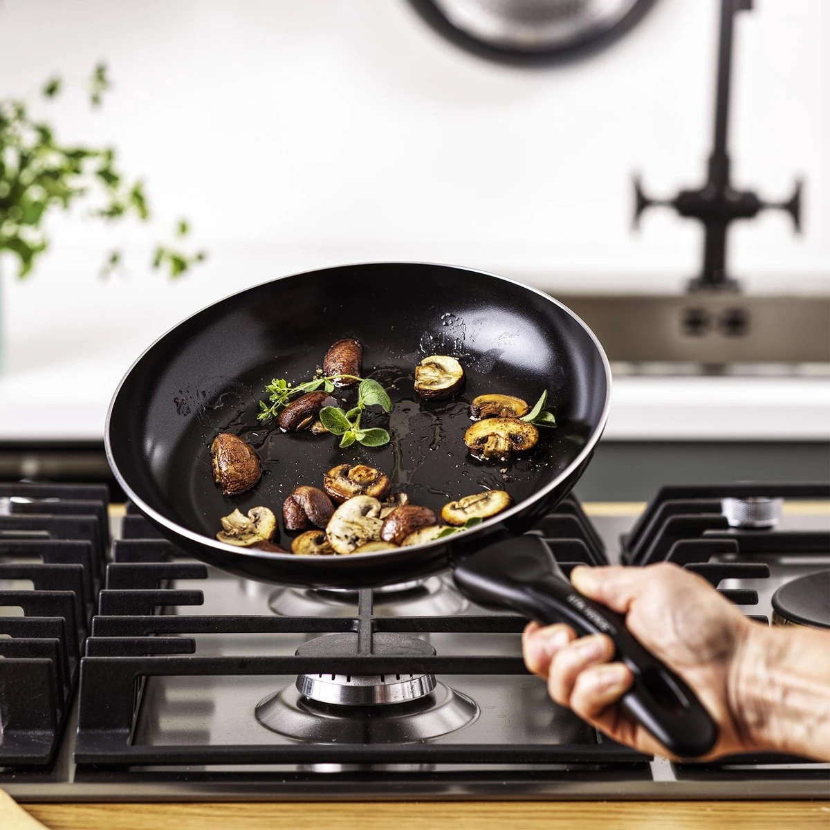 De PFAS-vrije VitaVerde Expert Koekenpannenset – 24 en 28 cm – Zwart is ideaal voor de keuken van elke dag. De pannen zijn gemaakt van kwalitatief aluminium en hebben een keramische antikleeflaag (PFAS-vrij). Die helpt je bakken zonder plakken met minder vetstof! De pannen werken op alle warmtebronnen.